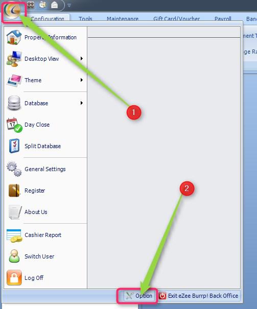 Click on eZee Icon >> Option