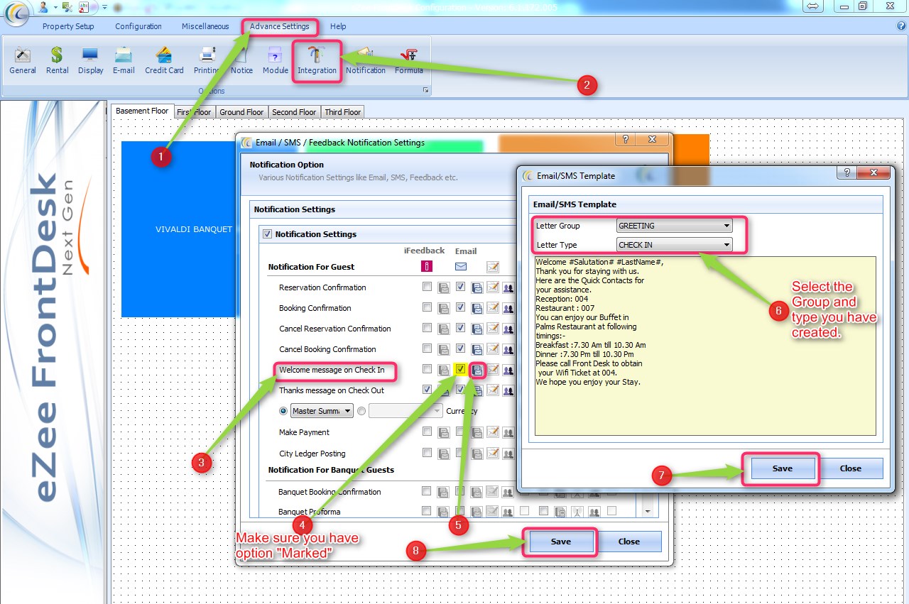 Path: eZee FrontDesk configuration >> "Advance Configuration" Tab >> "Notification" option