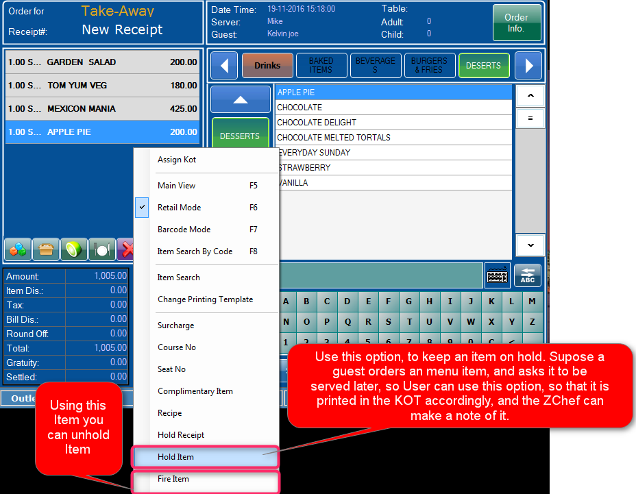Its communication between restaurant and kitchen, suppose that a guest order 3 item salad meat and dessert and we want to tell a chef to send 1st salad and after that the guest finish the salad we send message to send meat ? Print