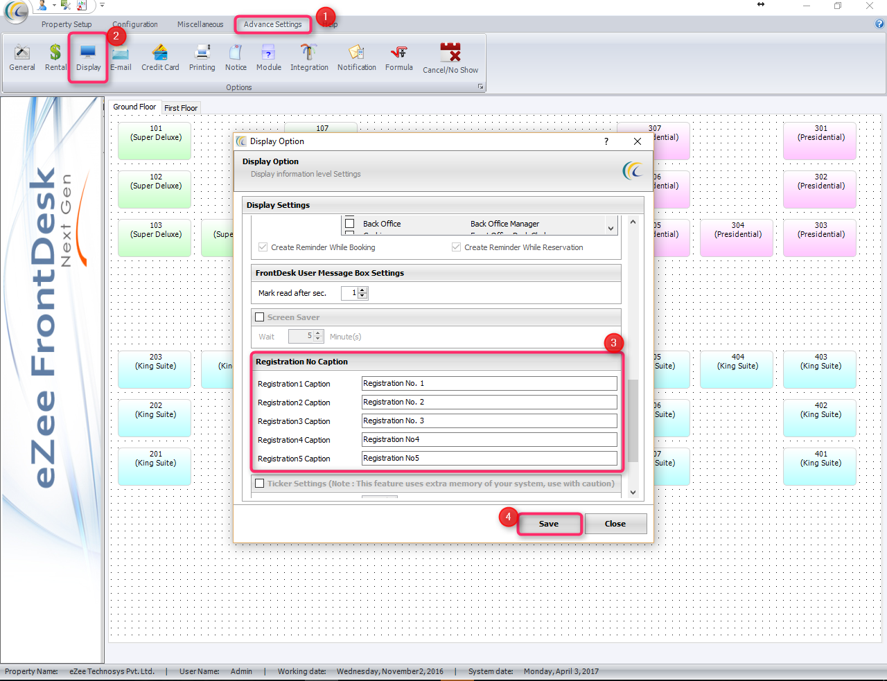 eZee Frontdesk configuration>>Advance setting>>Display>>Registration details.
